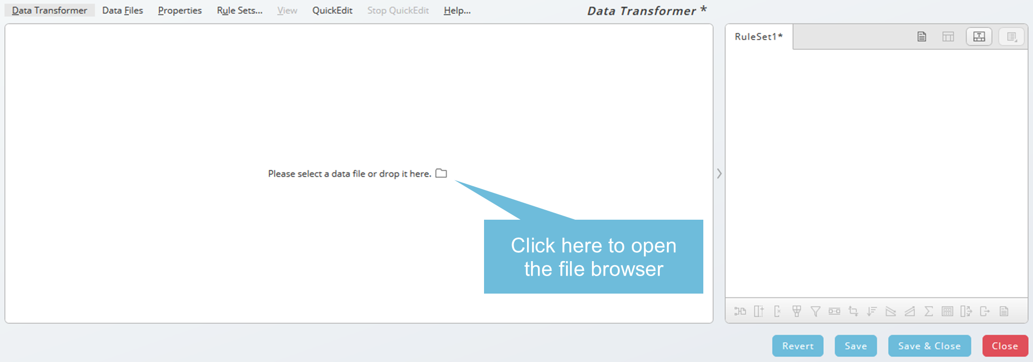 To open the Data Transformer, click on Control Center on the left-hand bar and press the Data Transformer icon on the tool bar.