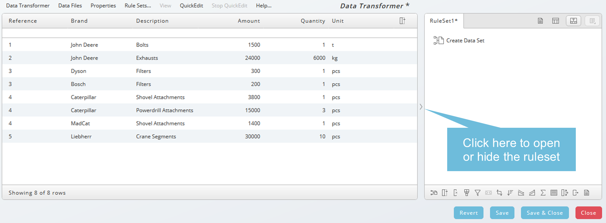 - Open an existing Data Transformer definition