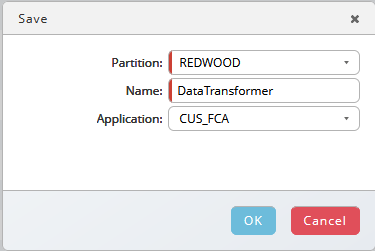 As long the new Data Transformer definition is not saved, the name is "'Ruleset1". Press Save button and specify at least Partition